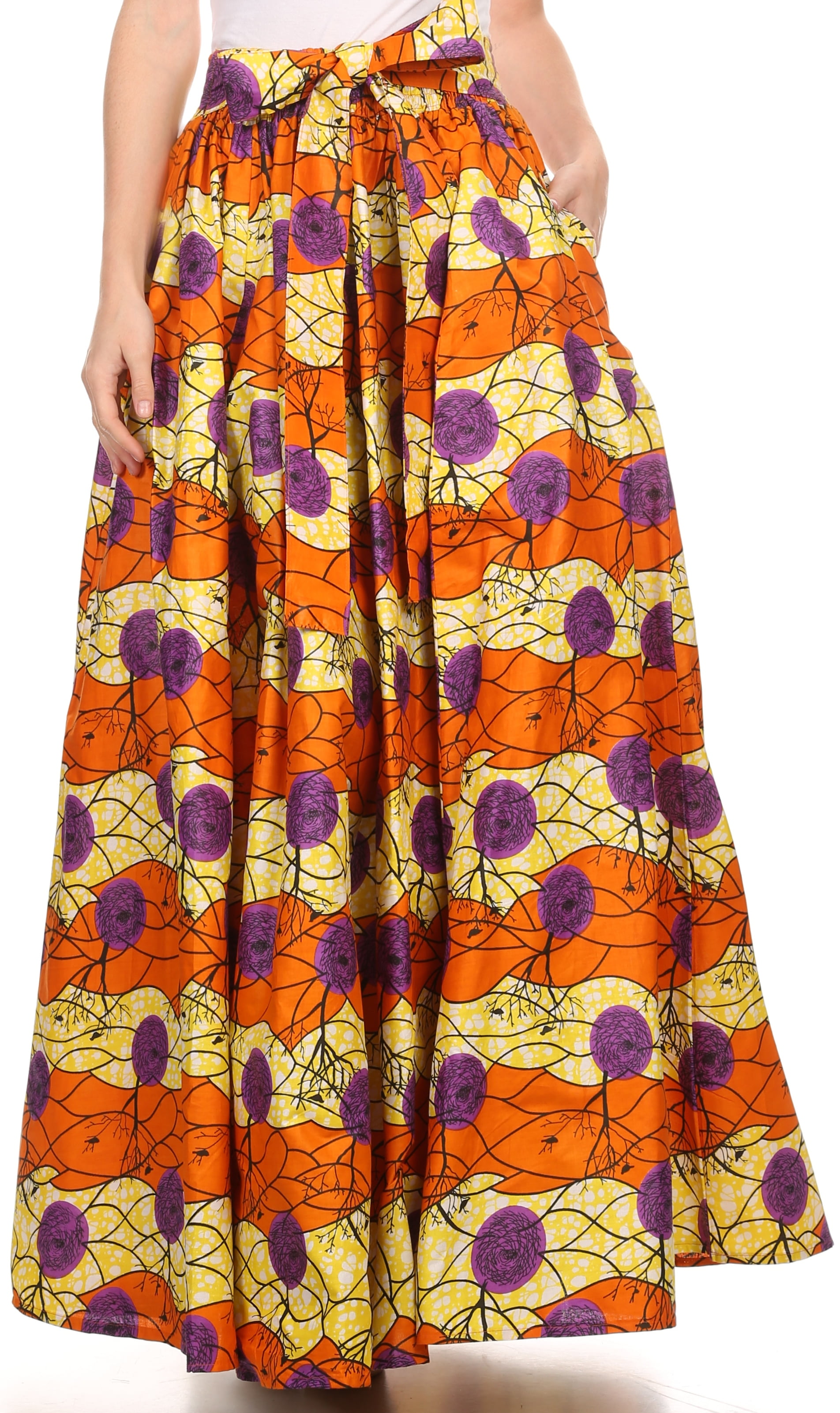 Sakkas Kelela Unique Designs Wax Print Adjustable Waist Long Tall Skirt Purple Orange Os Walmart Com